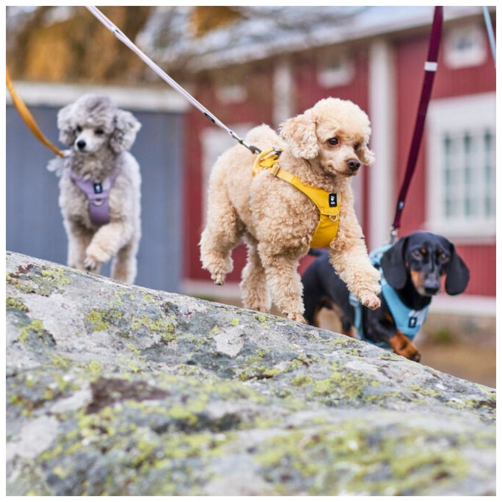 Tento postroj je ideálny pre malé a stredné psy, vrátane šteniat, ponúka bohatú nastaviteľnosť a je vyrobený z ľahkých, mäkkých recyklovaných materiálov.